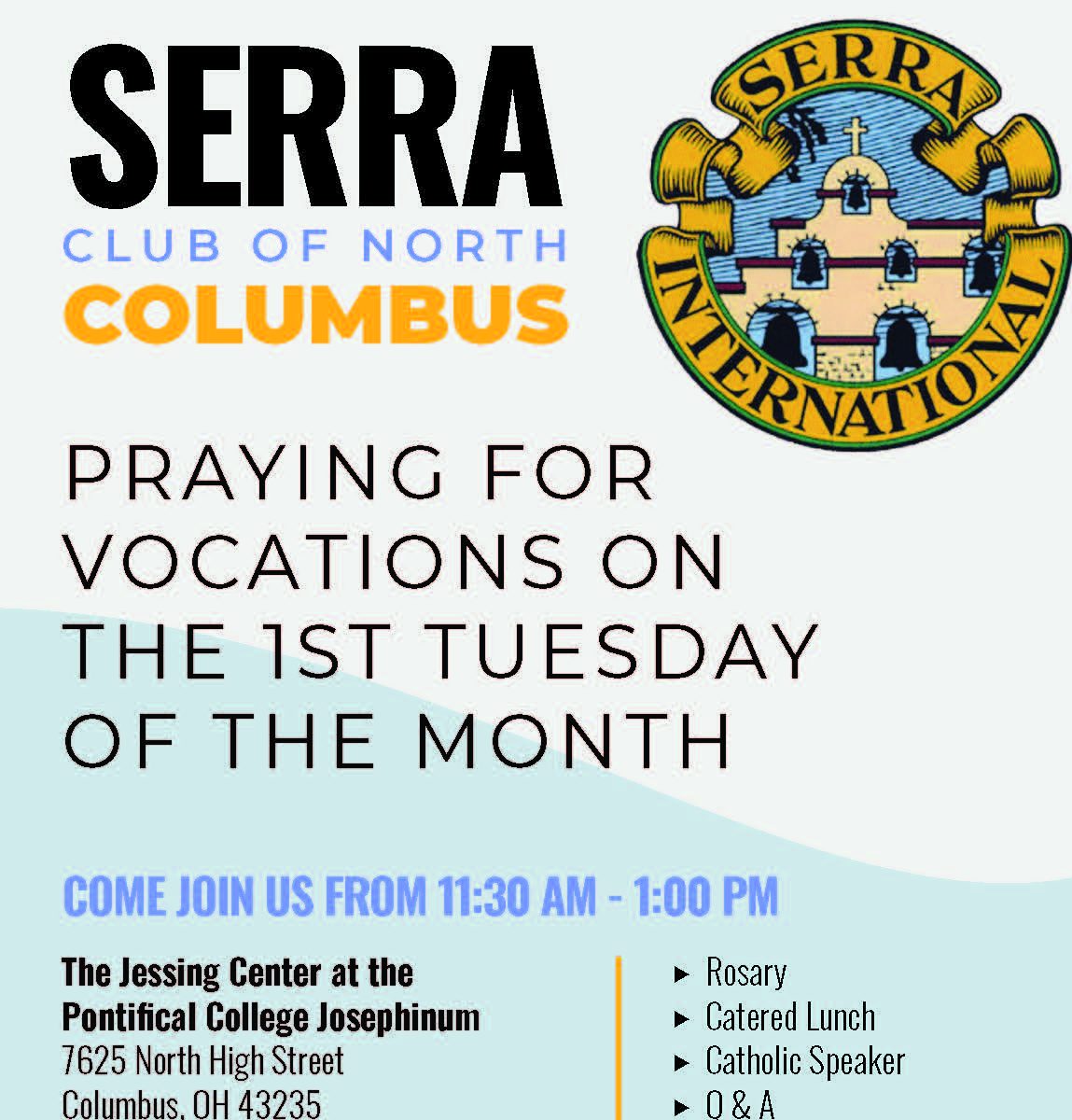 Luncheon meetings are the first Tuesday of the month at 11:30 at the Jessing Center (The building just north of Pontifical College Josephinum)